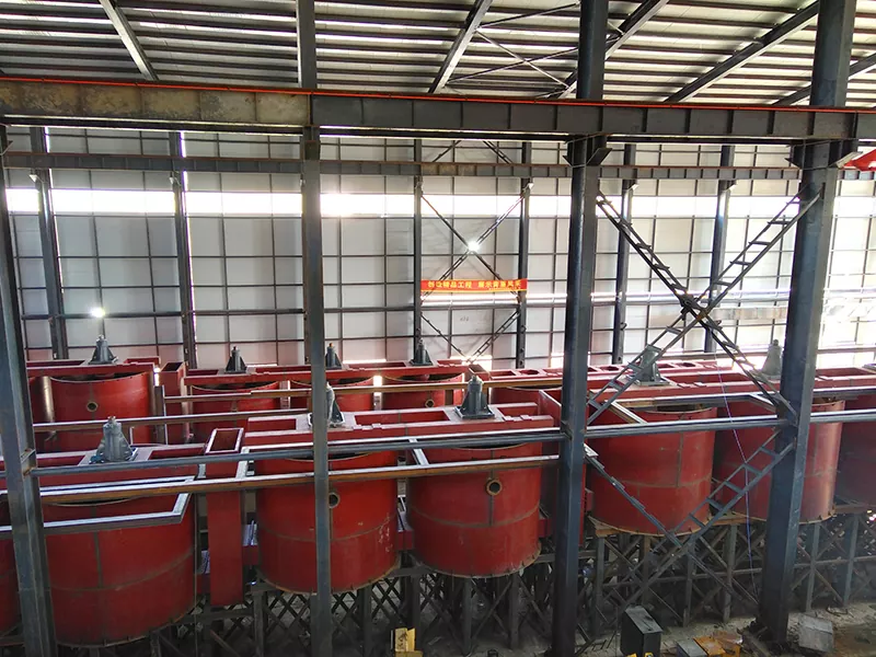 Srpski језик The Reagent Agitation Tank of the reagent is caried out by the stiring method o the radial cycle spiral turbomachinery,so that the reagent and the liquid are fully integrated.When the stiring tank works,the motor pulls the triangle belt transmission device to drive the impeller to rotate,and the drug mixes evenly under the uniform rotation of the impeller,so as to make necessary preparations for the mixing of pulp and drug in the next escenario.